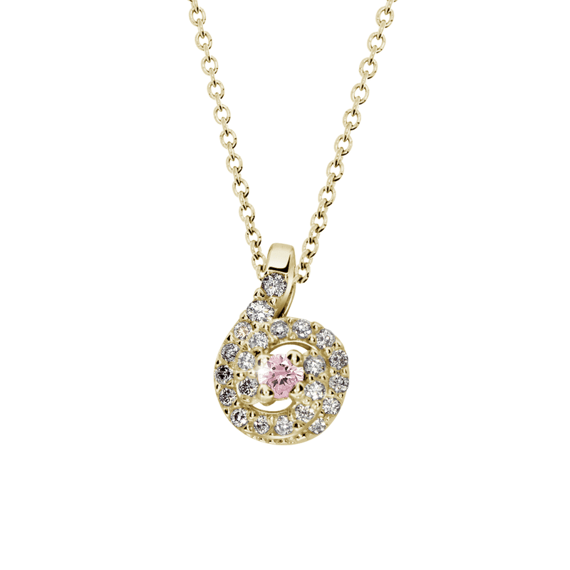 Krásný přívěsek ze žlutého 14 karátového zlata zvýrazněný 23 třpytivými brilianty kulatého brusu o celkové váze 0.156 ct. Přívěsek má lesklý povrch. Šperk je uložen v luxusní dárkové krabičce spolu s certifikátem pravosti.