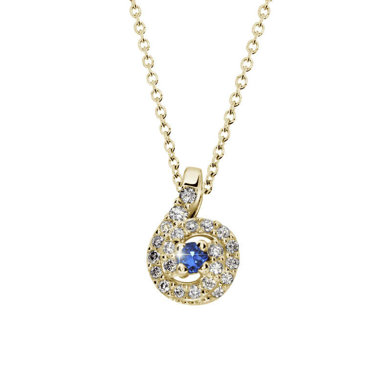 Krásný přívěsek ze žlutého 14 karátového zlata doplněný 23 krásnými brilianty kulatého brusu o celkové váze 0.153 ct. Přívěsek má lesklý povrch. Šperk je uložen v luxusní dárkové krabičce spolu s certifikátem pravosti.